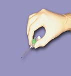 Зробіть венепункцію (про успішність венепункції та знаходженні голки у вені свідчить поява крові в камері візуалізації). При цьому швидкість появи крові в камері візуалізації безпосередньо залежить від розміру (діаметра) ПВК: чим більше діаметр, тим швидше з'явиться кров в камері візуалізації. Тому, при використанні тонких розмірів ПВК просування голки необхідно проводити повільніше, та орієнтуватися також на тактильні відчуття (при потраплянні голки у вену відчувається "провал").